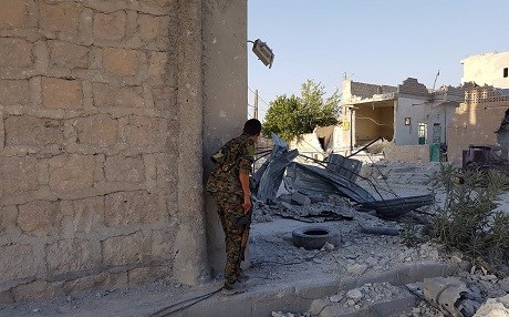 The Islamic State has been hiding behind the civilian population of Manbij throughout the battle for the city, which was launched in late May. They have also laid a high number of explosives throughout the city, with as many as 600 in a small area in some places. This has slowed the progress of the Kurdish-dominated SDF.