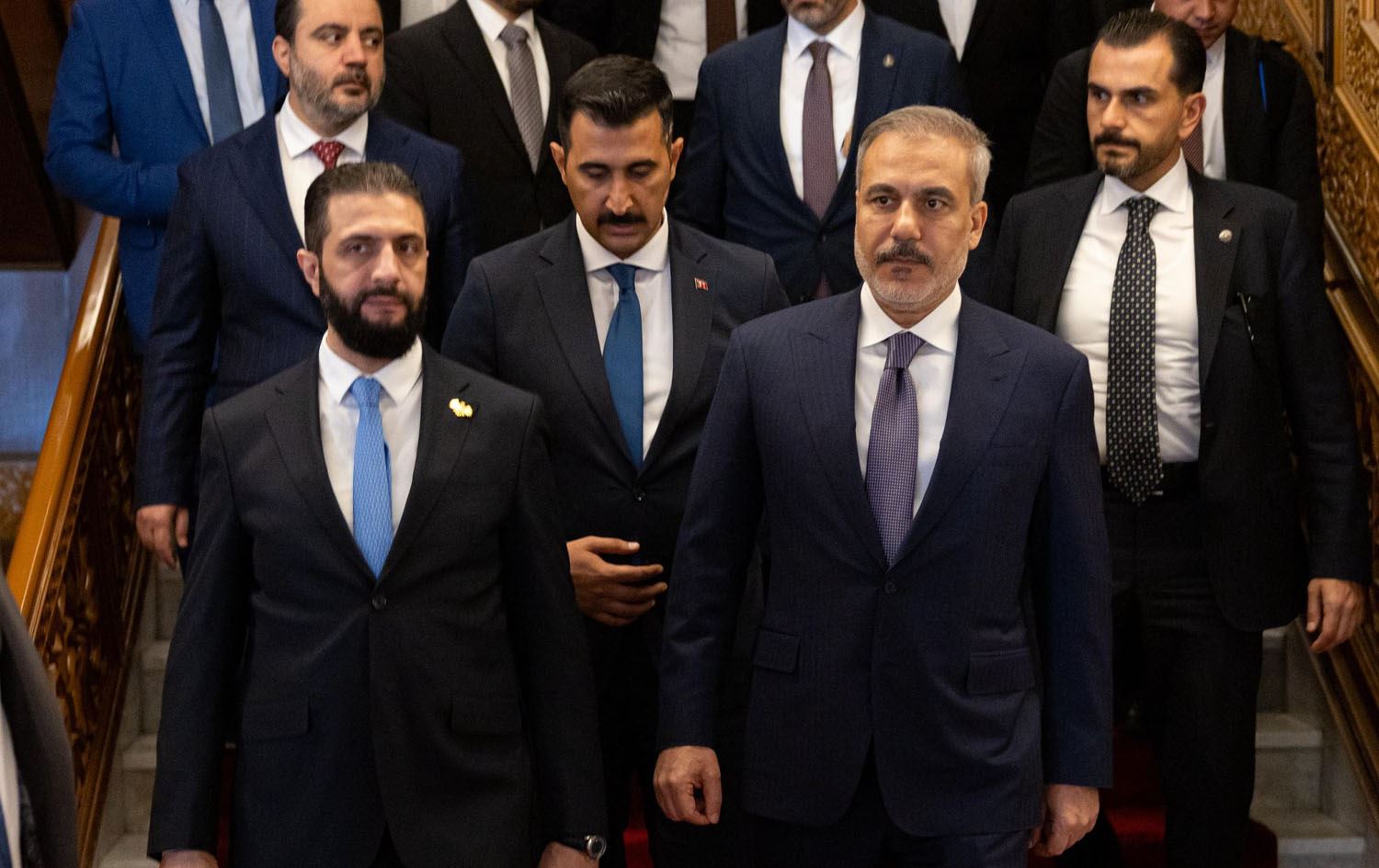 Syrian interim President Ahmad al-Sharaa (left) and Turkish Foreign Minister Hakan Fidan (right) meeting in Damascus on August 8, 2025. Photo: Hakan Fidan/X