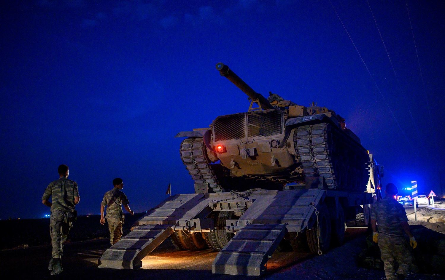 A Turkish tank is deployed in Sanliurfa province near the Syrian border, October 8, 2019. Photo: Bulent Kilic / AFP