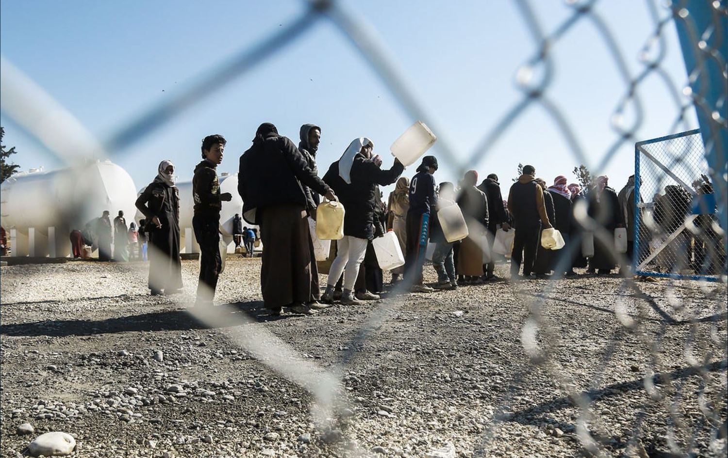 Refugees line up for water at al-Hol camp in Syria on 29 January 2017. File photo: Delil Souleiman/AFP