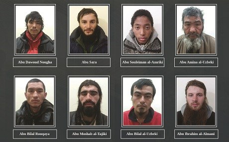 They are identified as Soulay Noah Su (aka Abu Souleiman al-Amriki), a 16-year-old American; Lucas Glass (aka Abu Ibrahim al-Almani), a 31-year-old German; Bimuraev Begjan (aka Abu Sara), a 30-year-old Russian; Askar Zarmanbetov (aka Abu Dawoud Nougha), a 27-year-old Ukrainian; Sattibek Oshibaev (aka Abu Rouqaya), a 30-year-old citizen of Kazakhstan; Mohammad Dawlat (aka Abu Mohsab Tajiki), a 22-year-old citizen of Tajikistan; and two nationals of Uzbekistan: Adil Rahimov (aka Abu Amina Uzbeki), 58, and Farhad Qaderov (aka Bilal Uzbeki), 28.