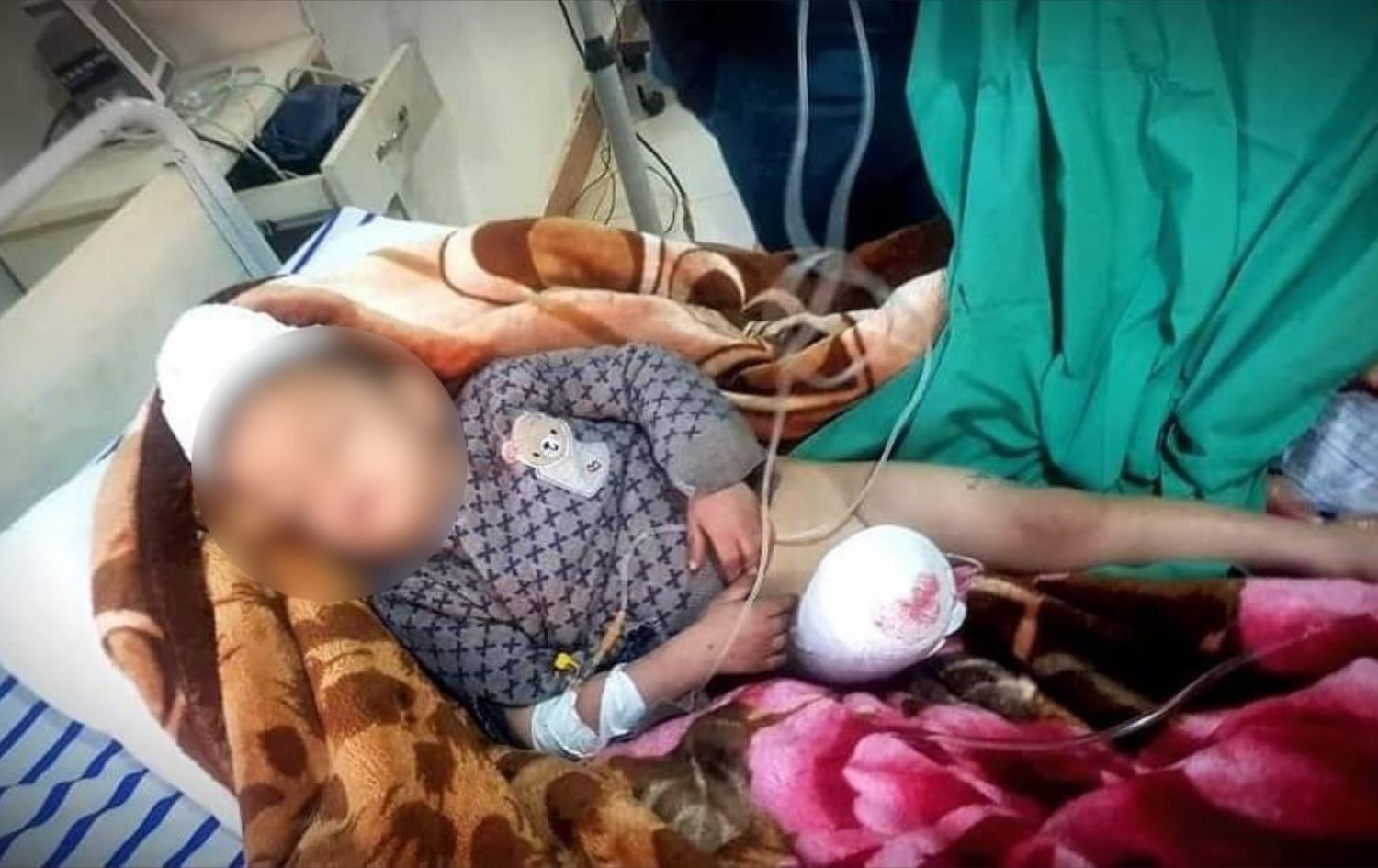 Photo of four year old Abdou Mustafa Hanifi, who lost a leg in the suspected Turkish attack in Kobane on January 8, 2021. Photo: Farhad Shami on Twitter