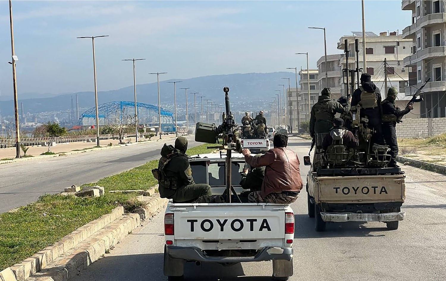 This handout picture released by the official Syrian Arab News Agency (SANA) shows members of the Syrian security forces entering the western city of Baniyas in Syria's coastal Tartous province to reinforce government troops in clashes with militants loyal to deposed ruler Bashar al-Assad, on March 7, 2025. Photo: SANA/AFP
