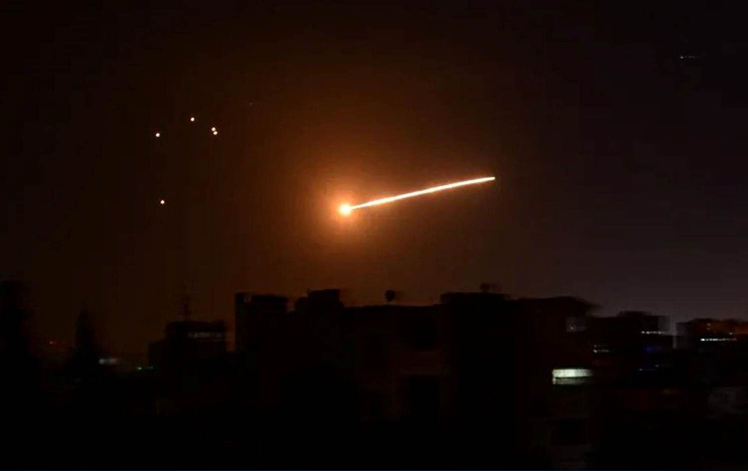 A handout picture released by SANA on February 24, 2020 reportedly shows Syrian air defense intercepting an Israeli missile in the sky over the Syrian capital Damascus. Photo: AFP