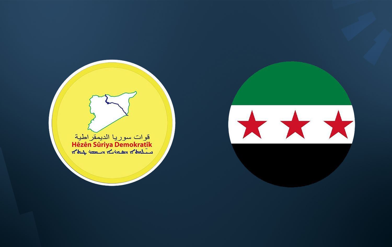 Logo of the Kurdish-led Syrian Democratic Forces (SDF) (left) and the flag of Syria (right). Graphic: Rudaw