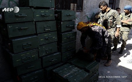 The SDF posted video hoisting their flags over Hrkol citadel in west Raqqa on Thursday.