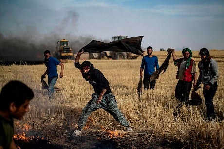 “Fires today engulfed hundreds of hectares of wheat in Tirbespi and the fires are still raging,” the head of the Kurdish agriculture authority Salman Bardo said, referring to the town named Al-Qahtaniya in Arabic.