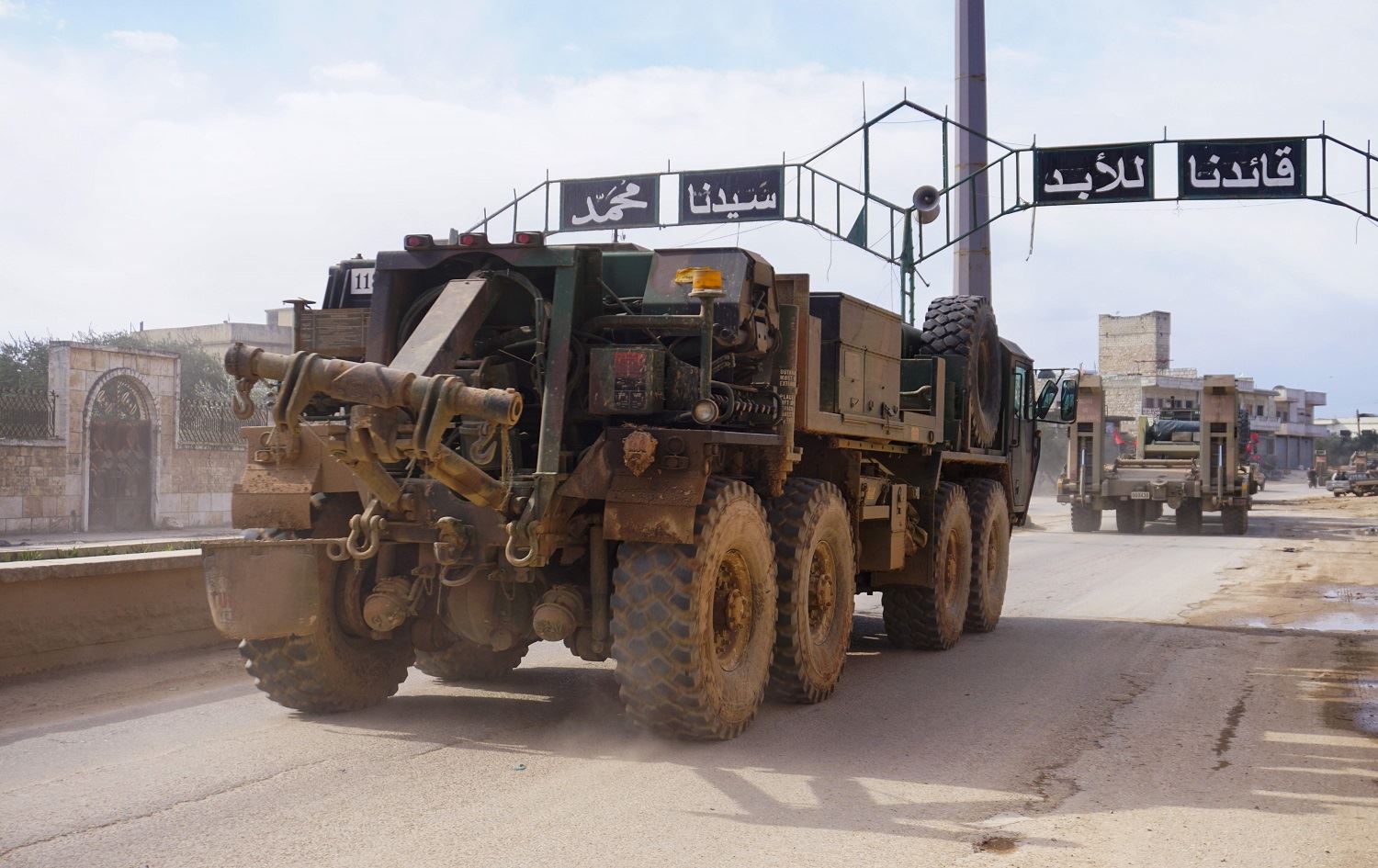 A Turkish military convoy passes through the town of Binnish in Syria’s Idlib province on February 10, 2020. Photo: Muhammad Haj Kadour
