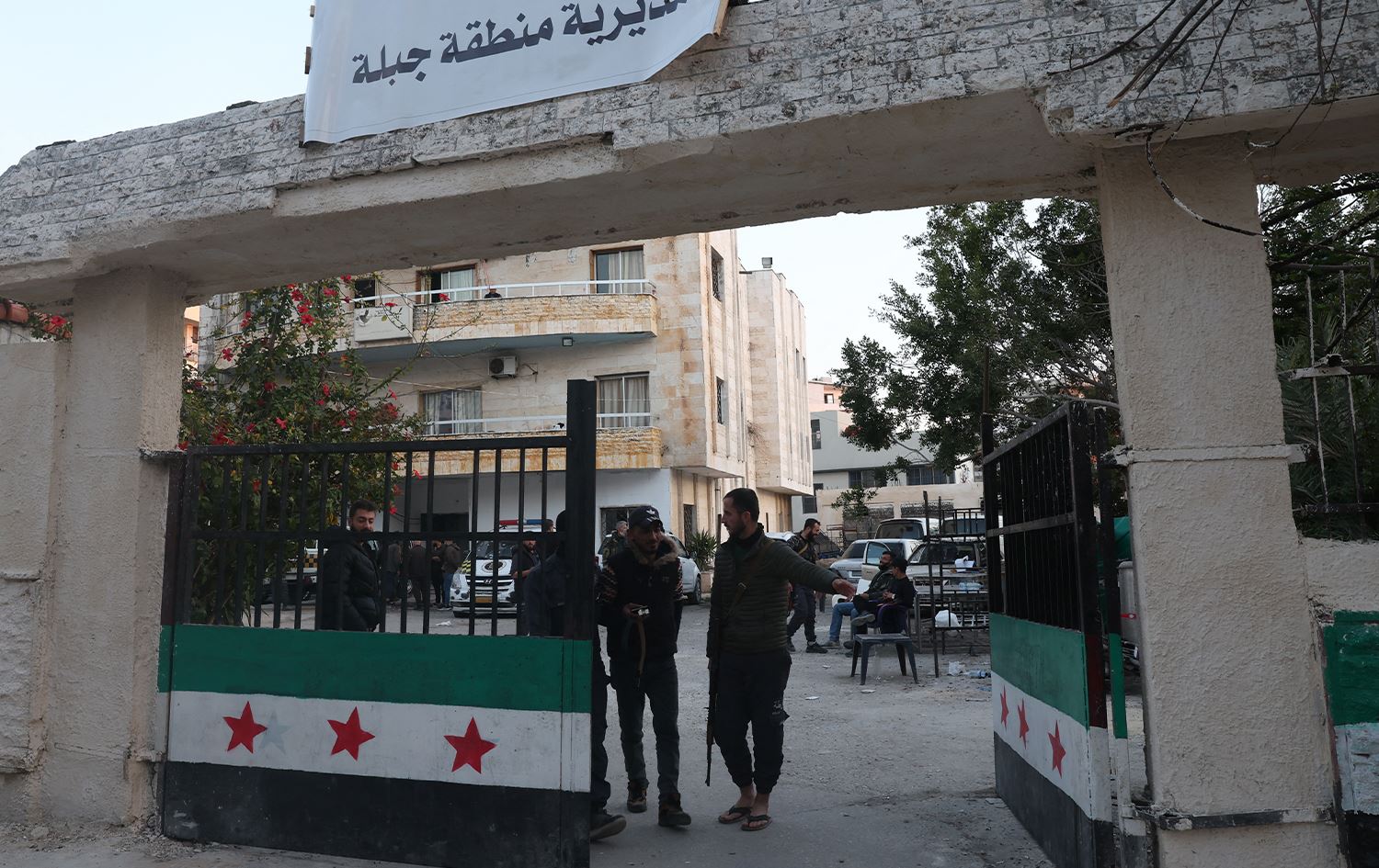 Security forces with Syria's new government gather in the municipality building in the town of Jableh in the coastal province of Latakia on March 10, 2025. Photo: AFP