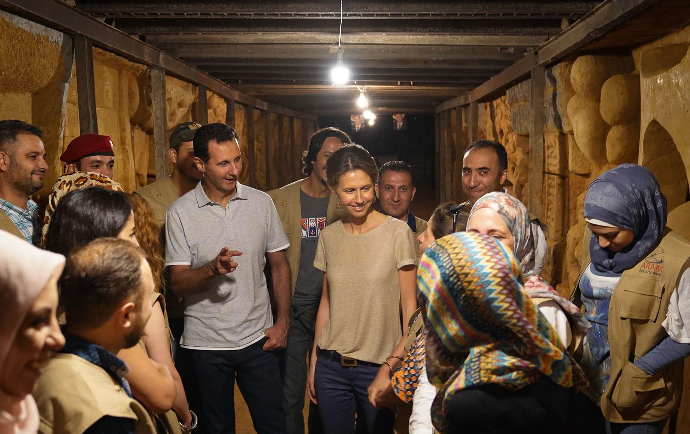 In this Aug. 16, 2018, file photo, Syrian President Bashar Assad, center left, and his wife Asmaa, meet with charity workers. Photo: Syrian Presidency via AP, File