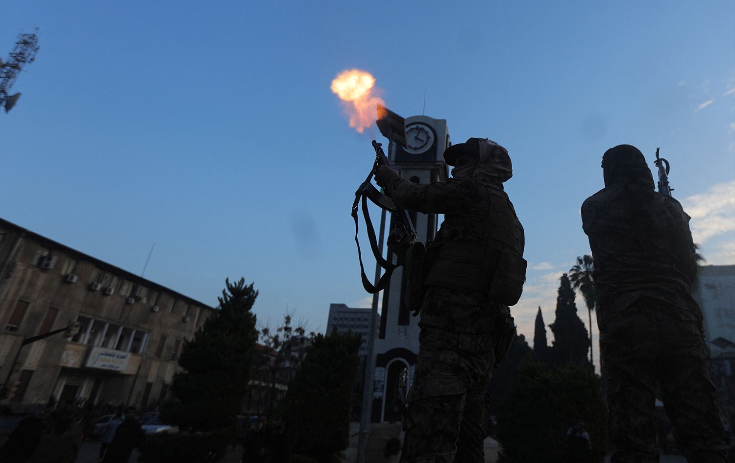 A Syrian anti-government rebel fighter fires in the air during celebrations in the central city of Homs early on December 8, 2024. Photo: Bakr Alkasem/AFP