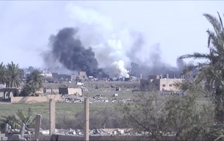 Coalition jets pound ISIS positions from the side and the SDF are attacking them on three sides from the ground.