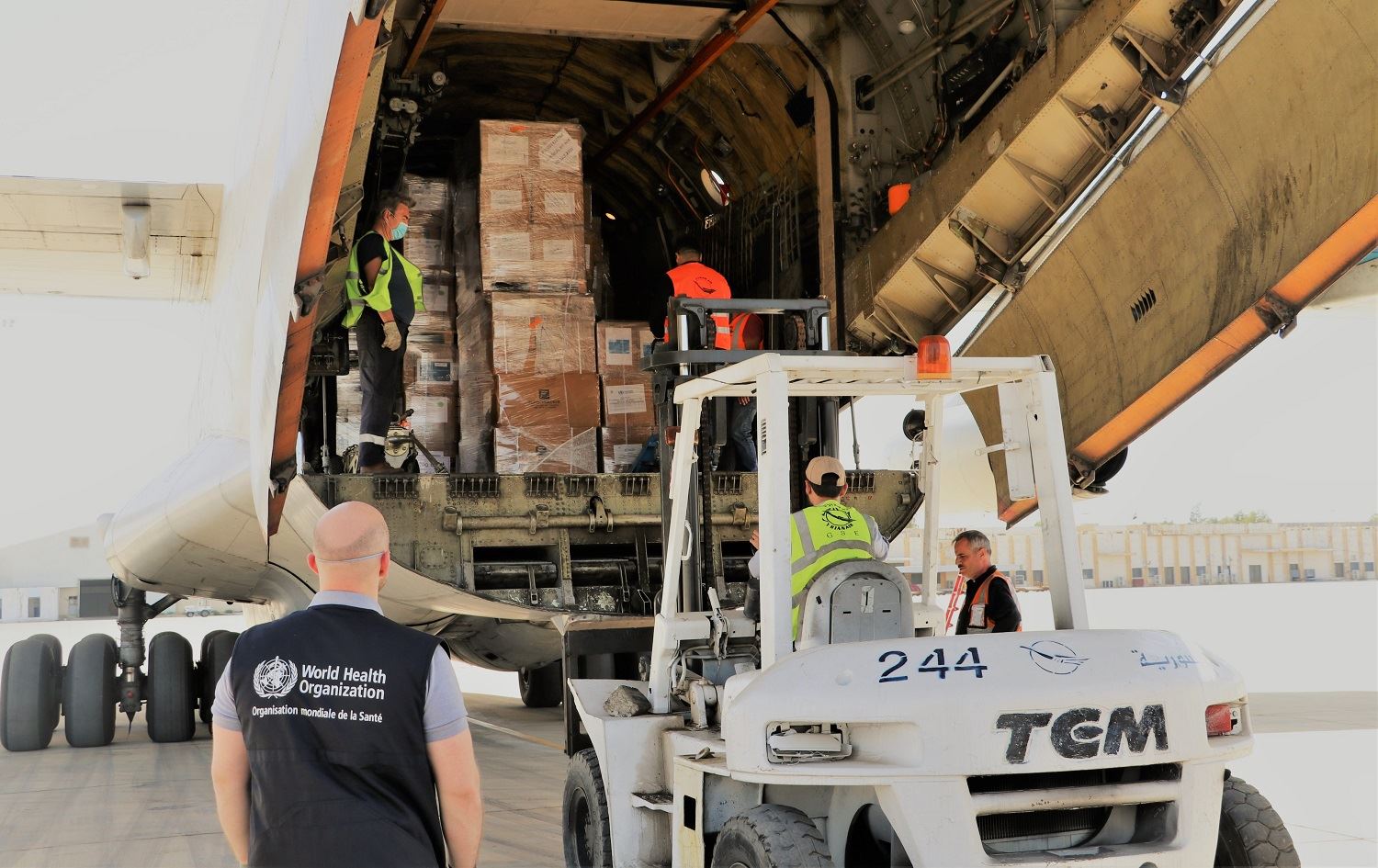 A 31-tonne medical shipment arrives at Damascus International Airport on June 12, 2020. Photo: WHO Syria