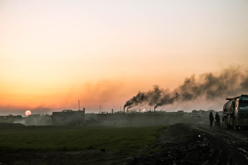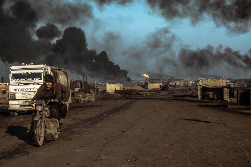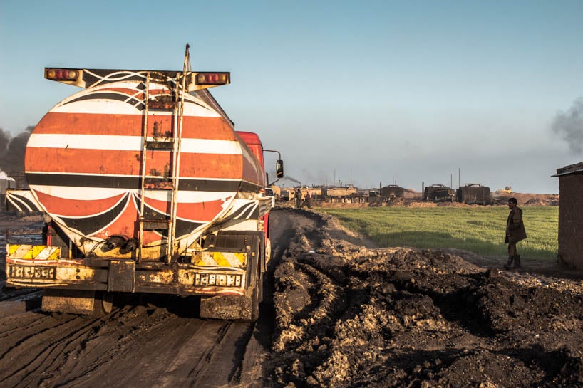 oil refineries in Rojava. Crude sloshing out of full trucks bouncing over the route had mixed with the ochre-coloured earth, forming the grey sludge that squelches under wheel.