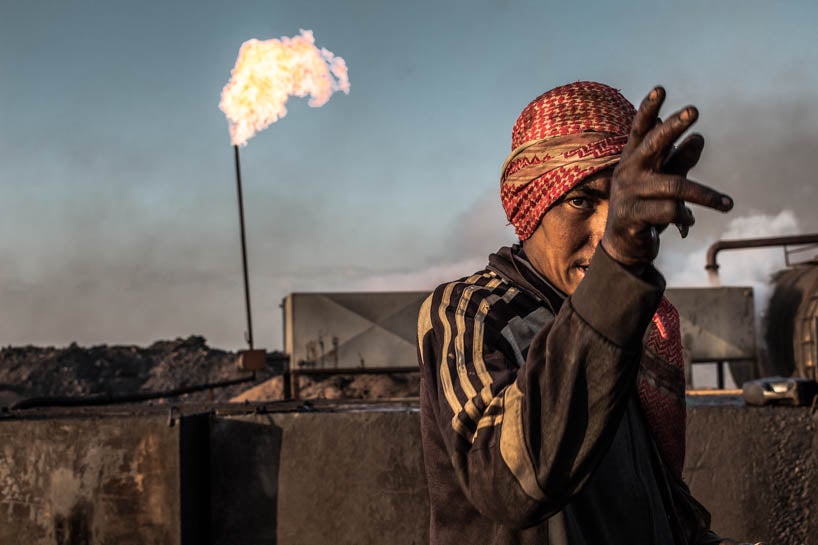Mozaffar Ali is 17 years old and has been working at the refinery for two years. His job is to pump oil from the trucks into tanks.