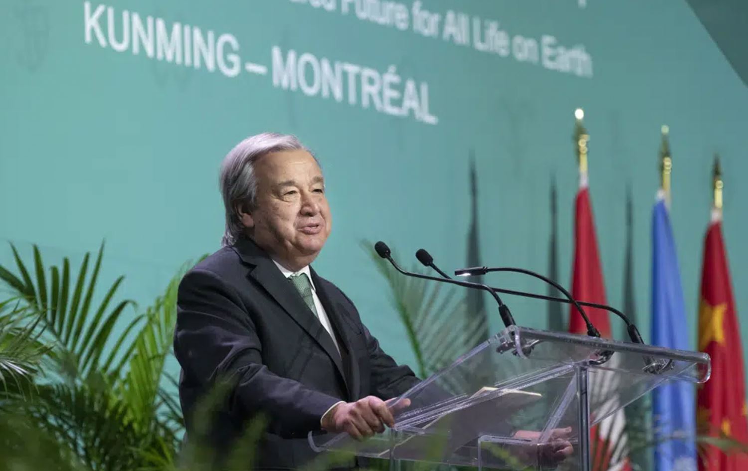 Secretary-General of the United Nations Antonio Guterres delivers remarks during the opening ceremony of COP15, the U.N. Biodiversity Conference in Montreal, on December 6, 2022. Photo: Paul Chiasson/The Canadian Press via AP