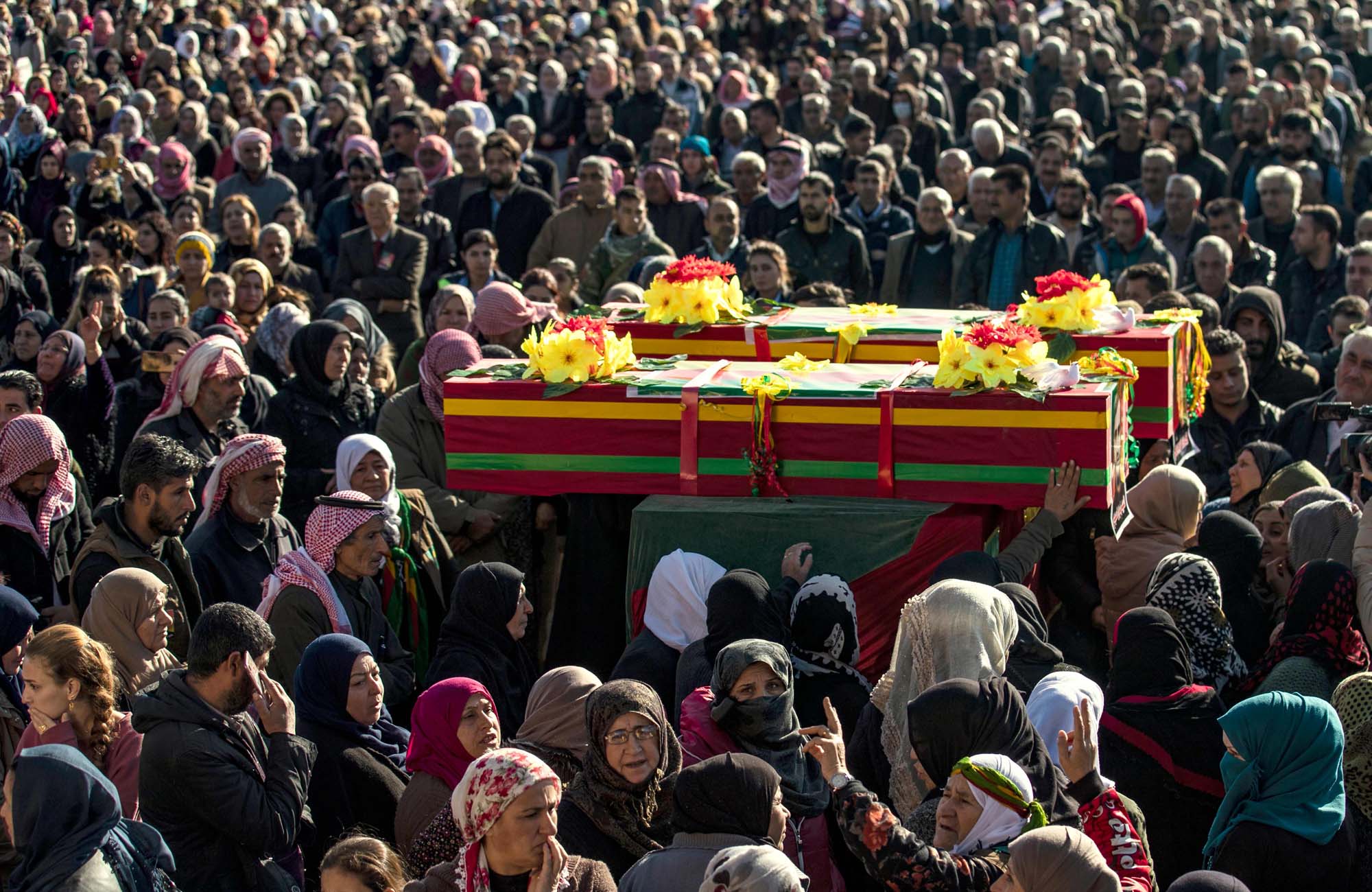Thousands of locals and relatives of the dead, as well as officials and commanders attended their funerals on Monday.