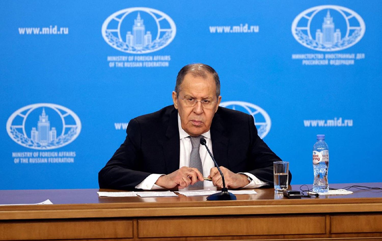 Russian Foreign Minister Sergei Lavrov gives an annual press conference on Russian diplomacy in 2021, in Moscow on January 14, 2022. Photo: Dimitar Dilkoff/AFP