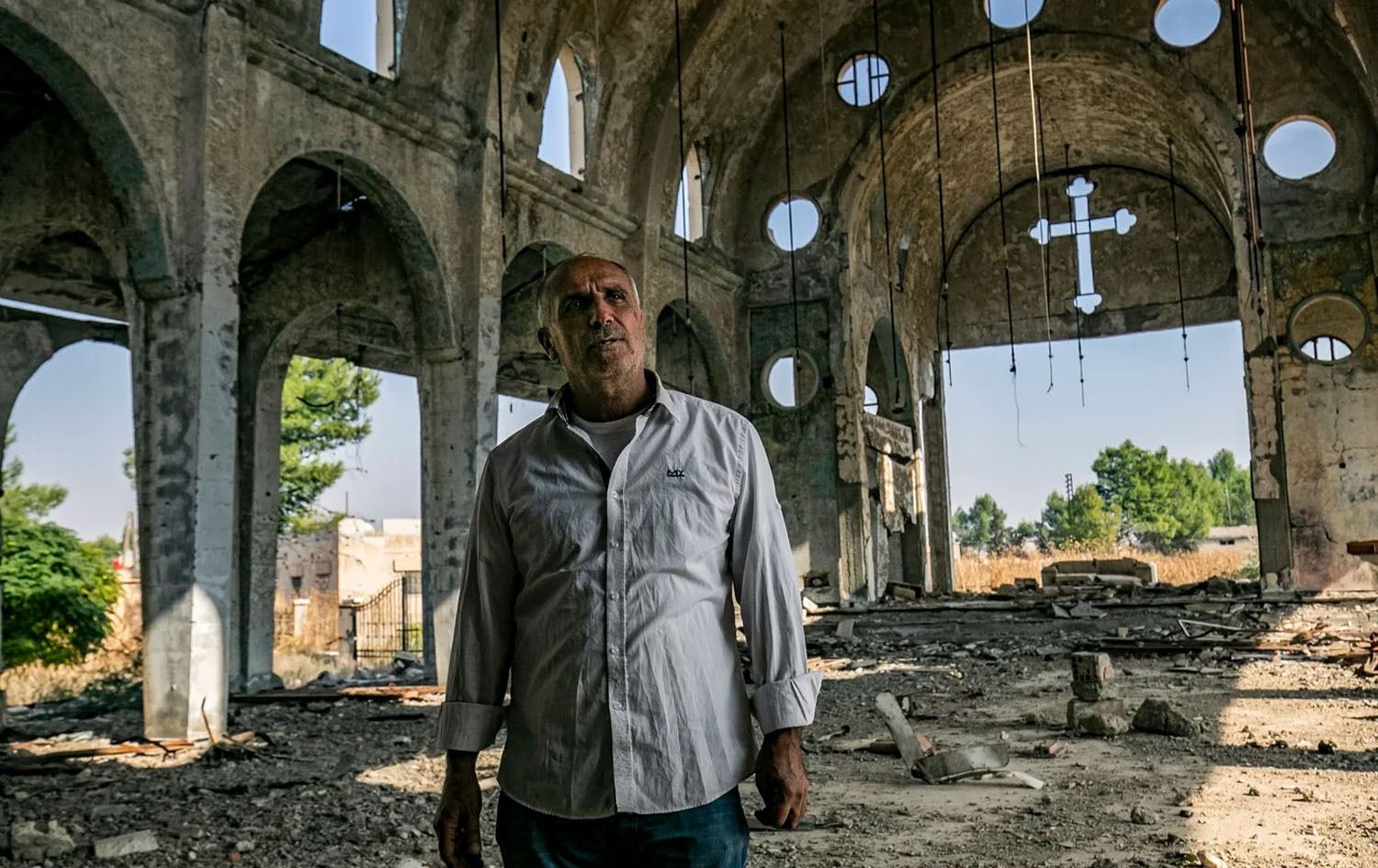 An Assyrian Christian from the Assyrian Church of the Virgin Mary, which was destroyed by the Islamic State group, in the village of Tal Nasri in northeastern Hasakah province, on November 15, 2019. Photo: AFP