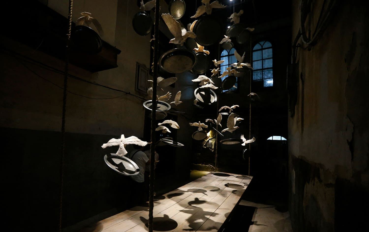 The doves have been incorporated into student artworks, including an installation by 24-year-old Hammoud Radwan.