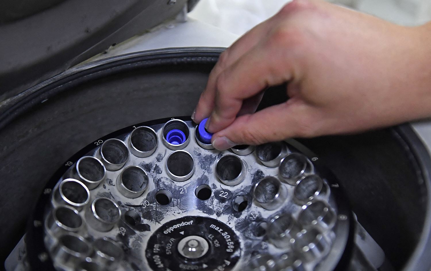 A lab technician working on samples to test for cholera at a hospital in Syria's northern city of Aleppo on September 11, 2022. Photo: AFP