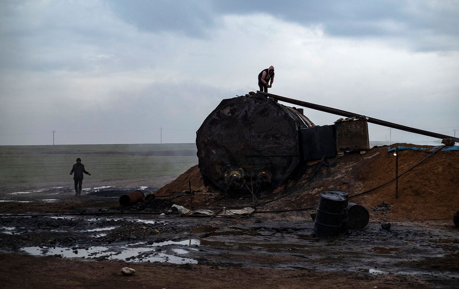 A picture taken on January 11, 2024, shows people working at a primitive oil facility in the Abu Ghadir area in Qamishli. Photo: Delil Souleiman/AFP