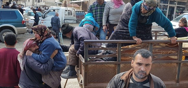 The people have fled to the outskirts of the city and villages under regime control, north of Aleppo, some of them traveling long distances on foot.