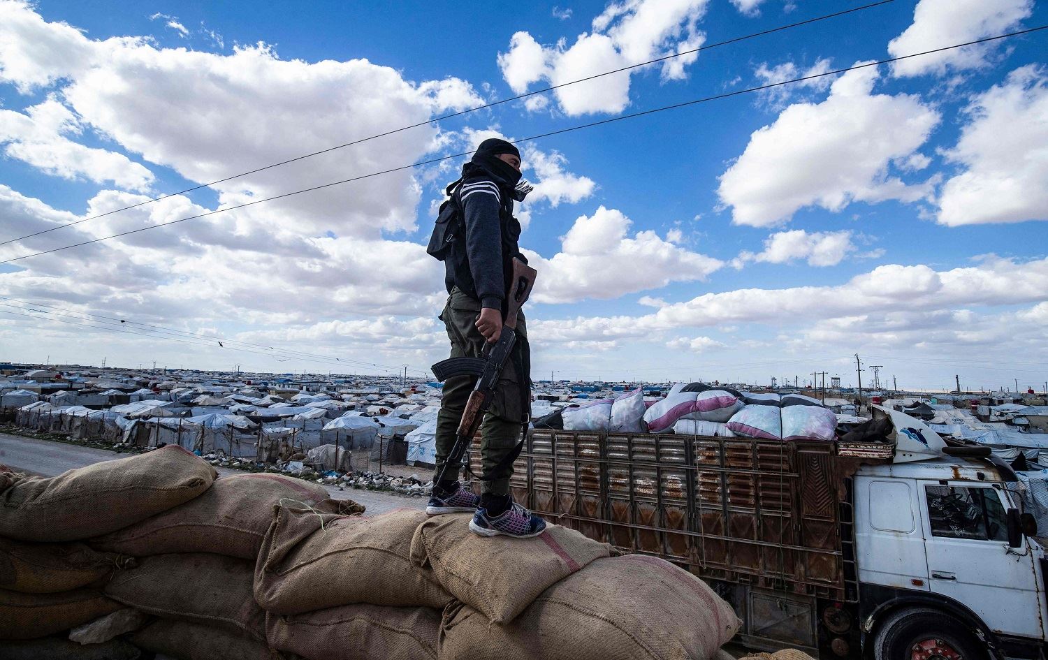 A member of Kurdish security forces looks out over al-Hol camp in northeast Syria (Rojava) on March 18, 2021. File photo: Delil Souleiman/AFP