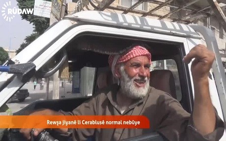 “Thanks be to God, the new life here is a rebirth. There are a lot of civilians in Jarablus now. People have started coming back to the town again,” said a man who was interrupted by what appeared to be gunfire.