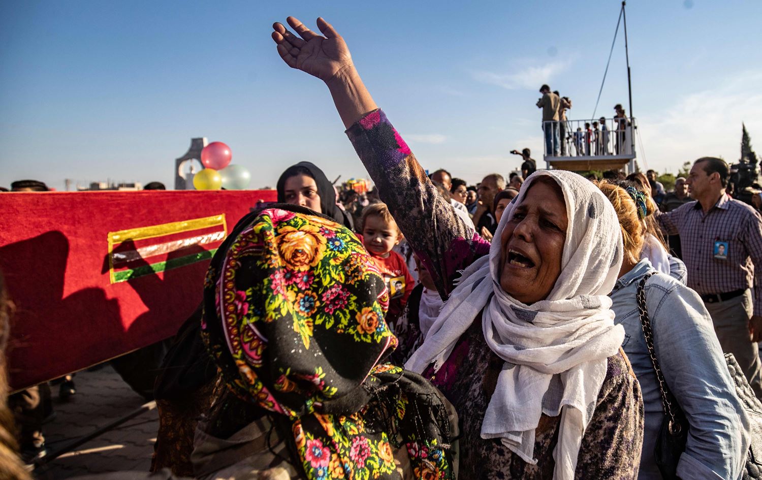 Mourners attend the funeral of five Syrian Democratic Forces' fighters killed in battles against Turkey-led forces in the flashpoint town of Sari Kani (Ras al-Ain) along the border, on October 14, 2019 in the Syrian Kurdish town of Qamishli. Photo: Delil Souleiman/AFP