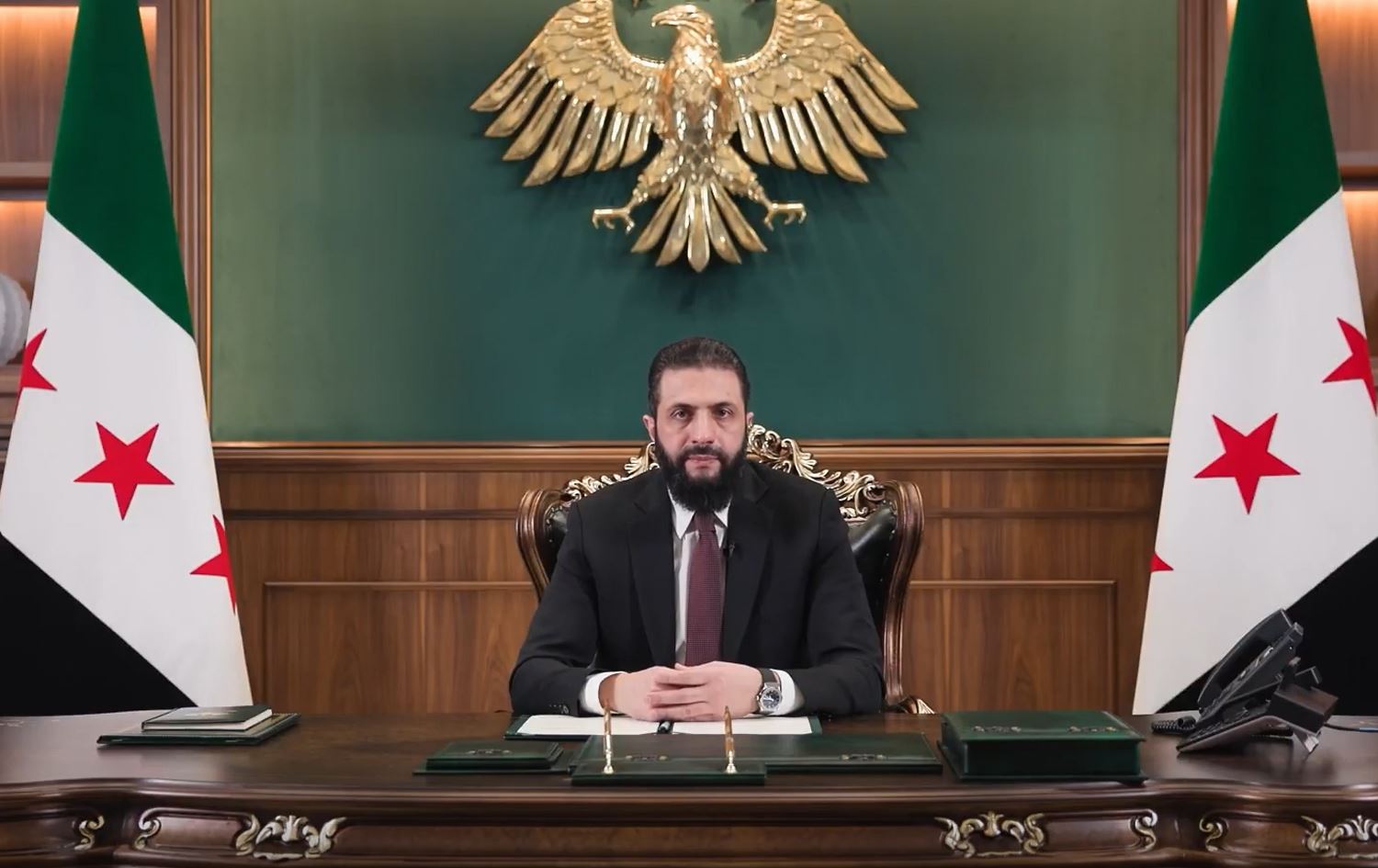 Syrian interim President Ahmed al-Sharaa delivering a message in a video published on January 16, 2025. Photo: Screengrab / Ahmed al-Sharaa / X