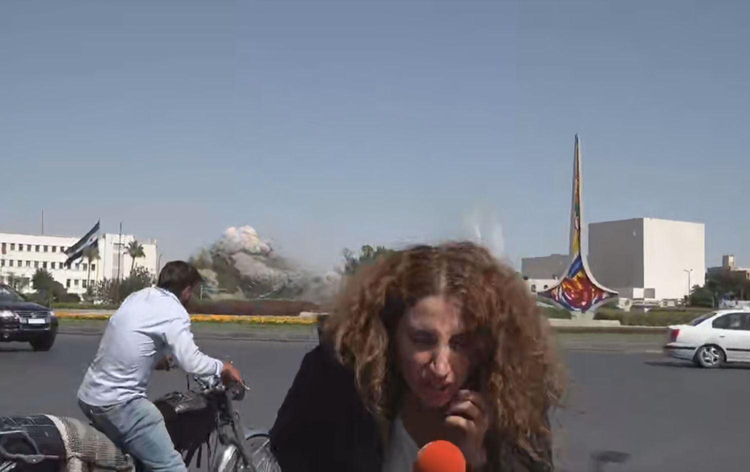 Blast rocks military building in Damascus as Rudaw reporter Solin Mohammedamin delivers live message on July 16, 2025. Photo: Screengrab/Rudaw