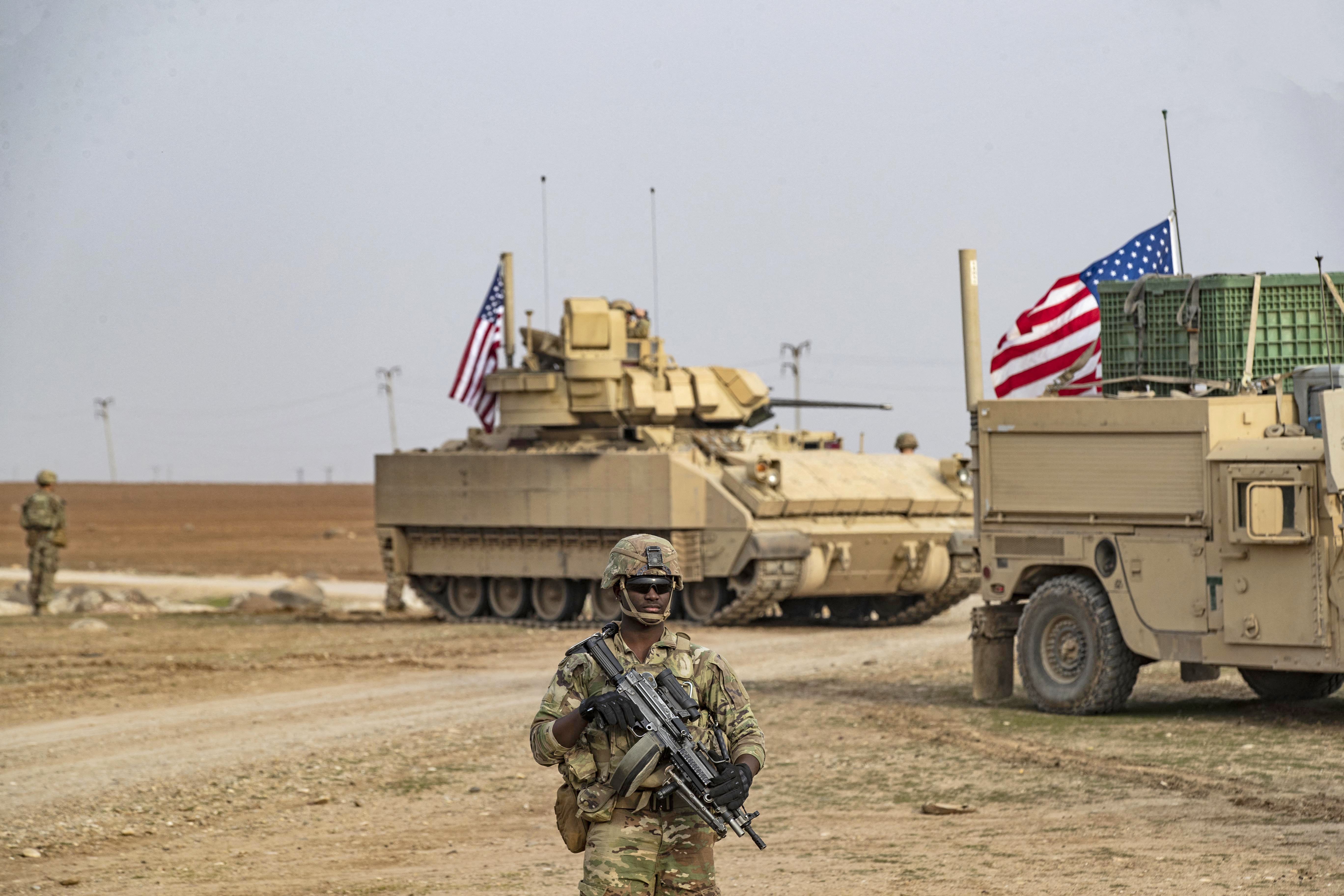 US forces patrol in the vicinity of the Hori rehabilitation centre for children of suspected Islamic State (ISIS), in the town of Tel Maaruf in Syria's northeastern Hasaka province, on December 15, 2022. Photo: AFP