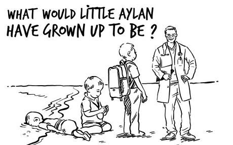 “What would little Aylan have grown up to be?” said the caption on Queen Rania’s cartoon. “He would have possibly become a doctor, a teacher or a kind father.”