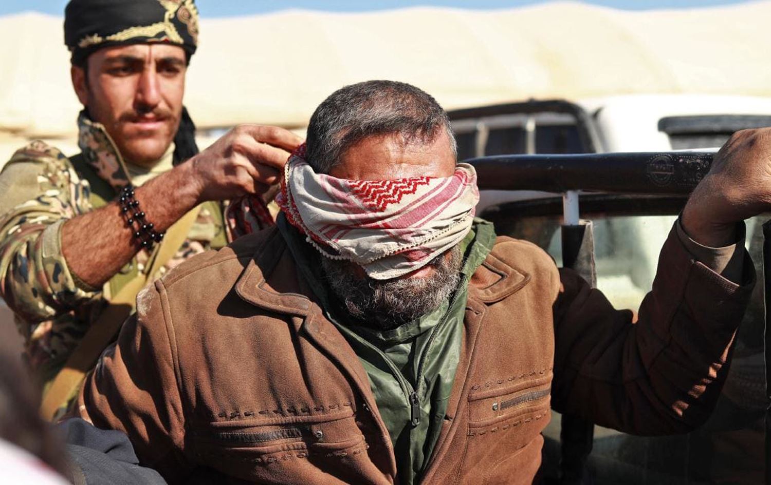 An ISIS fighter in custody of the Syrian Democratic Forces (SDF) forces in Baghouz, Syria. (AFP)
