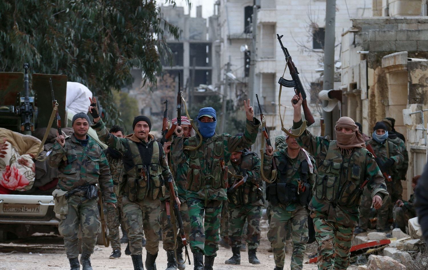 Members of the Syrian army deploy in the al-Rashidin 1 district of Aleppo’s southwestern countryside, February 16, 2020. Photo: AFP