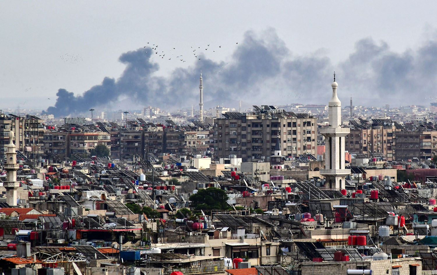 Smoke billows above buildings after an alleged Israeli strike on the outskirts of Damascus on November 22, 2023. Photo: AFP