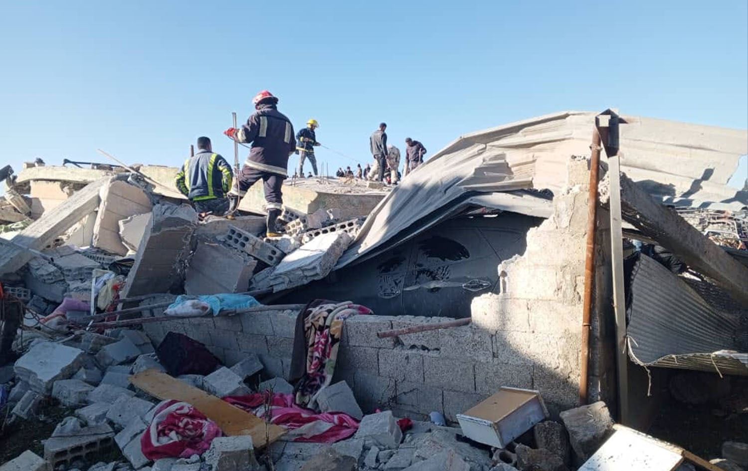 Suspected Jordanian airstrikes struck civilian houses in the town of Orman in the southern province of Suwayda on January 18, 2024, killing ten members of the same family. Photo: Suwayda Fire Brigade