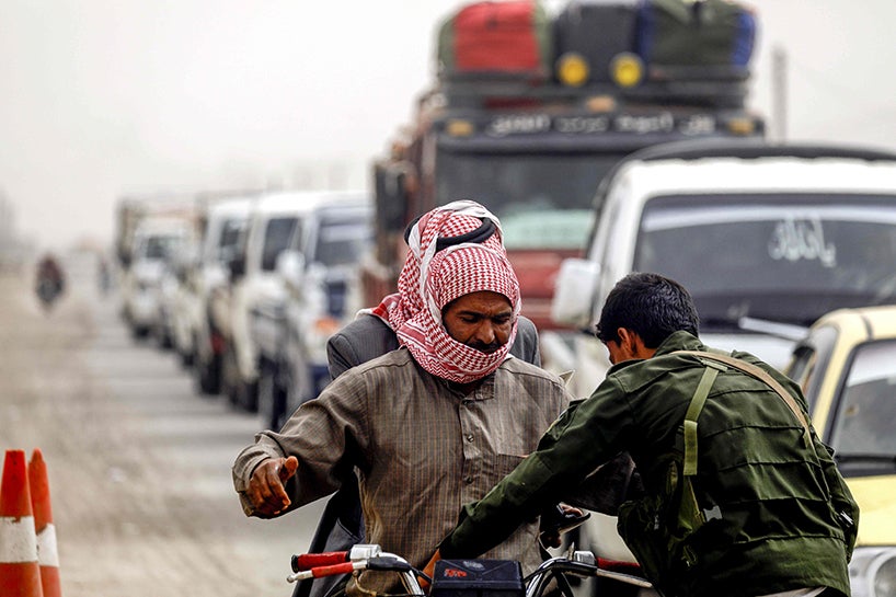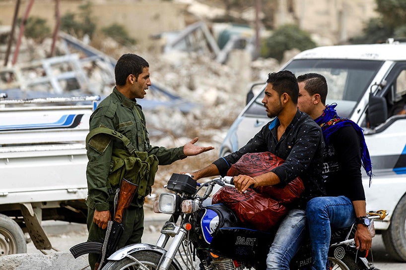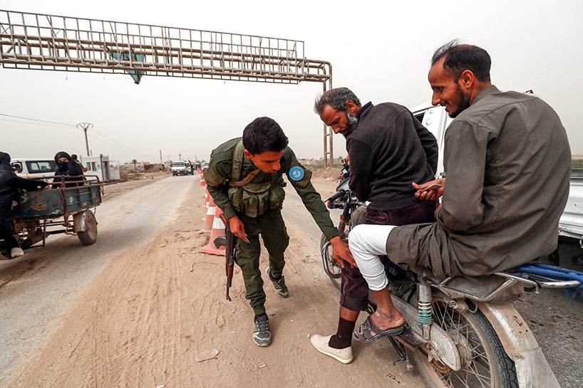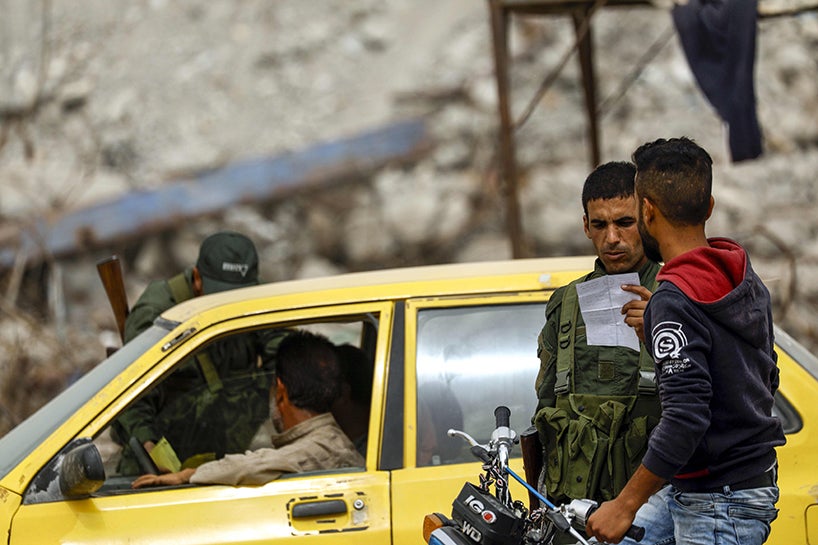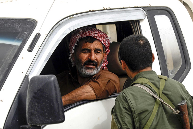 At Raqqa's entrance, soldiers verify drivers' identity papers and carefully sift through lorry cargoes.