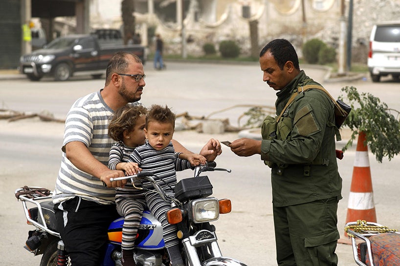 Inside the city, there are regular foot patrols and armoured vehicles sit at strategic points.