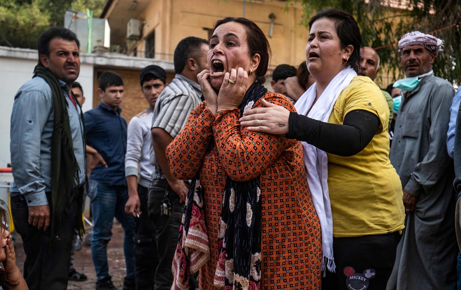 A woman reacts as the body of a man killed during Turkish shelling in the area surrounding the Syrian Kurdish town of Ras al-Ain arrives at a hospital in the nearby town of Tal Tamr following the announced ceasefire on October 18, 2019. Photo: Delil Souleiman/AFP