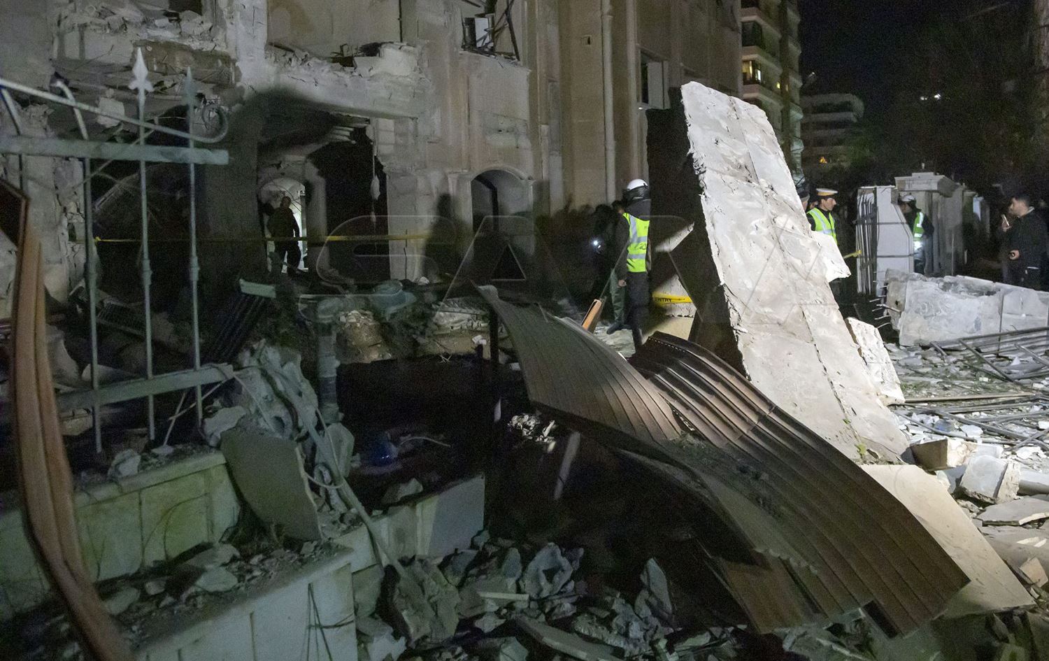 The aftermath of a barrage of suspected Israeli missiles hit several locations in Syria in the early hours of February 19, 2022, with footage showing the impact on a residential building in Damascus. Photo: SANA