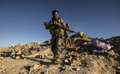 The militants are stretched out along a sliver of territory on the banks of the river, a stone’s throw from the border with Iraq.