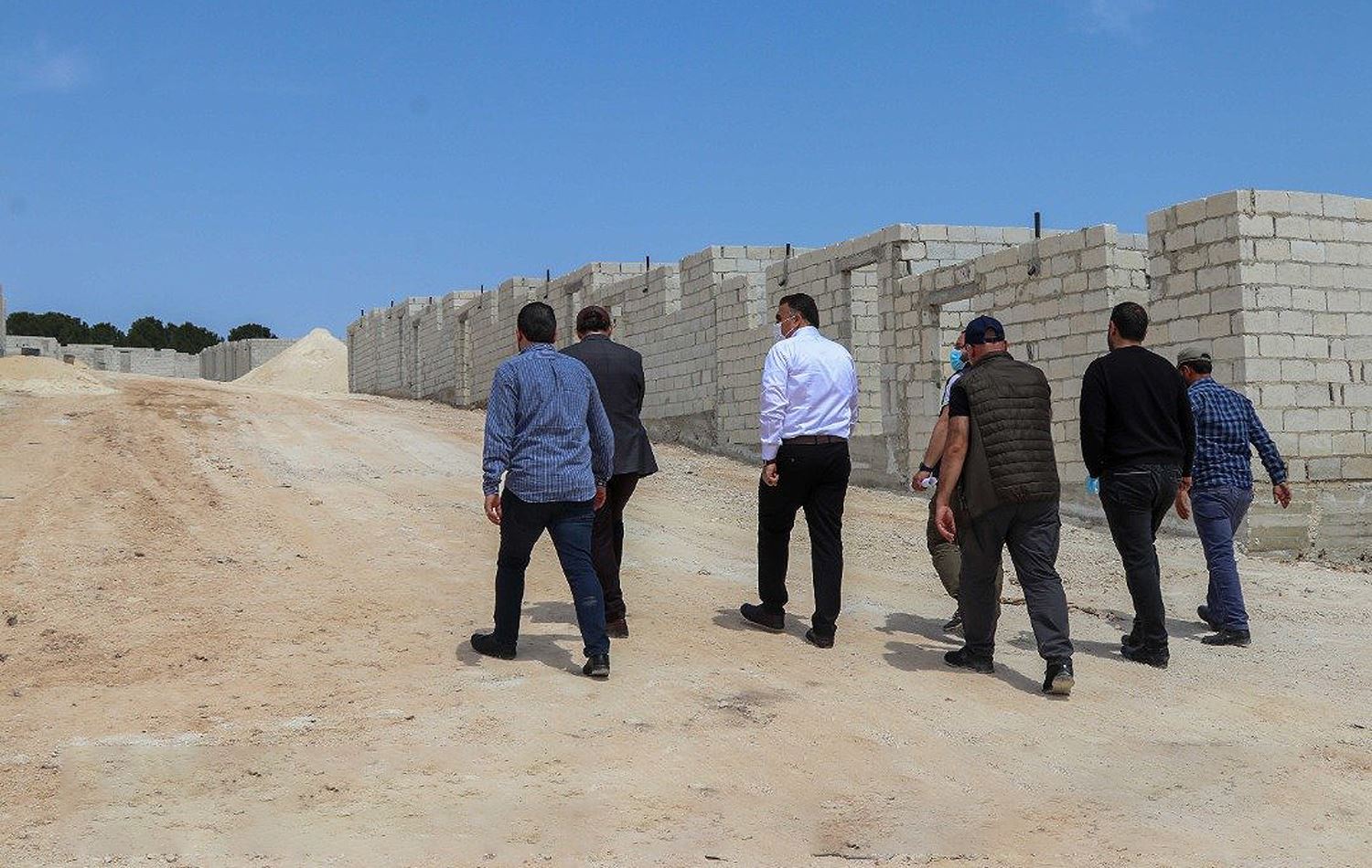 Mohammed Sheikh Rasheed, deputy head of the council and Ahmed Haji Hussein head of Afrin Health Directorate, and unidentiifed people visit the site of the village on April 17, 2021. Photo: Afrin Local Council