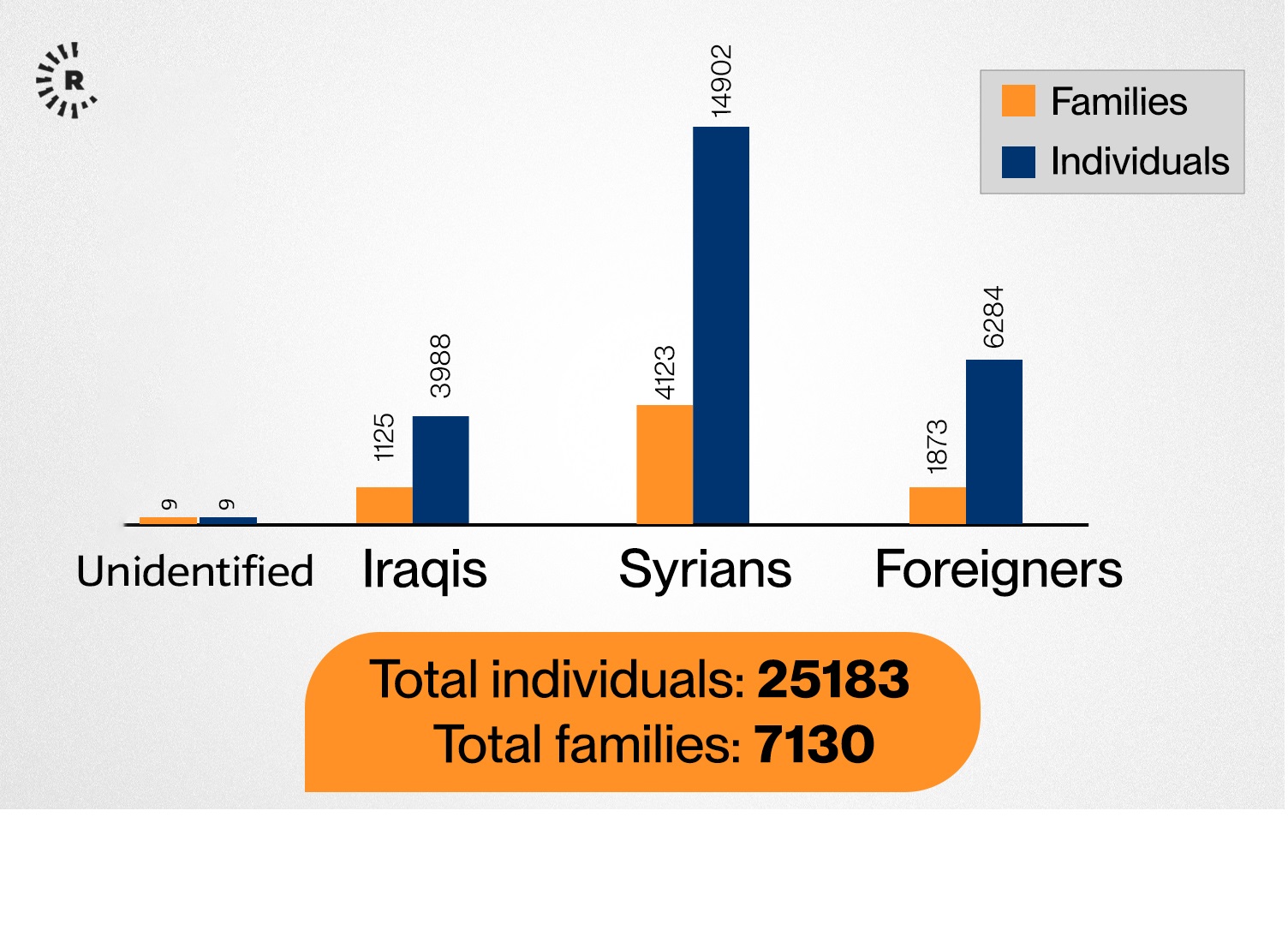Sheikhmous Ahmed, who oversees camps for internally displaced people (IDPs) and refugees in northeast Syria (Rojava), told Rudaw English that “a total of 7,130 families - 25,183 individuals - were held at al-Hol camp prior to the SDF’s withdrawal.” He added that “it remains unclear how many detainees have fled and who currently controls the camp.”