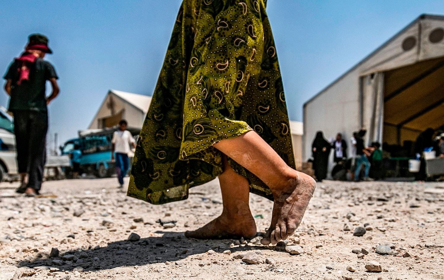 A young child walks barefoot at al-Hol camp in Hasake governorate, northeastern Syria on July 22, 2019. File photo: AFP