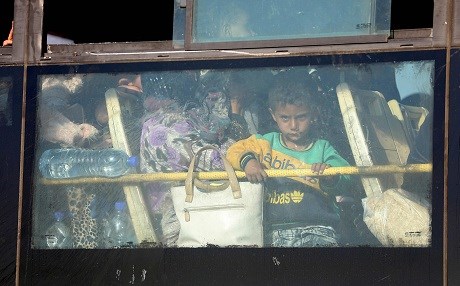 They were to be transferred to other buses run by local NGOs, before travelling further north to temporary camps in rebel-held areas in Idlib and Aleppo provinces, the Britain-based monitor said.