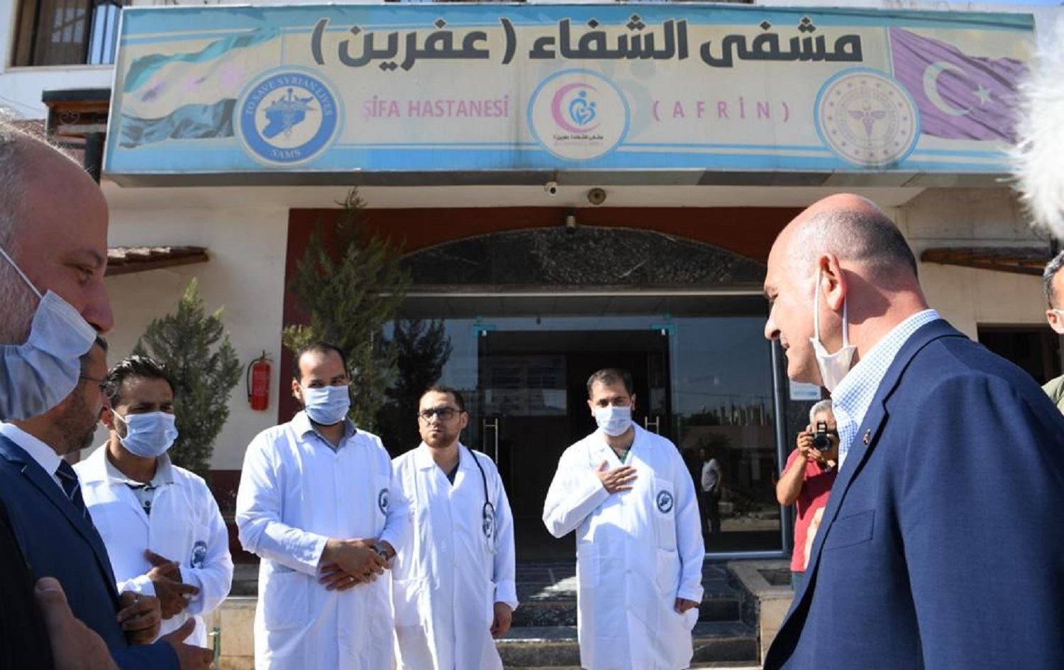 Turkey’s Interior Minister Suleyman Soylu (right) visits Shifa hospital in Afrin on July 20, 2021. Photo: handout/Turkish Interior Ministry