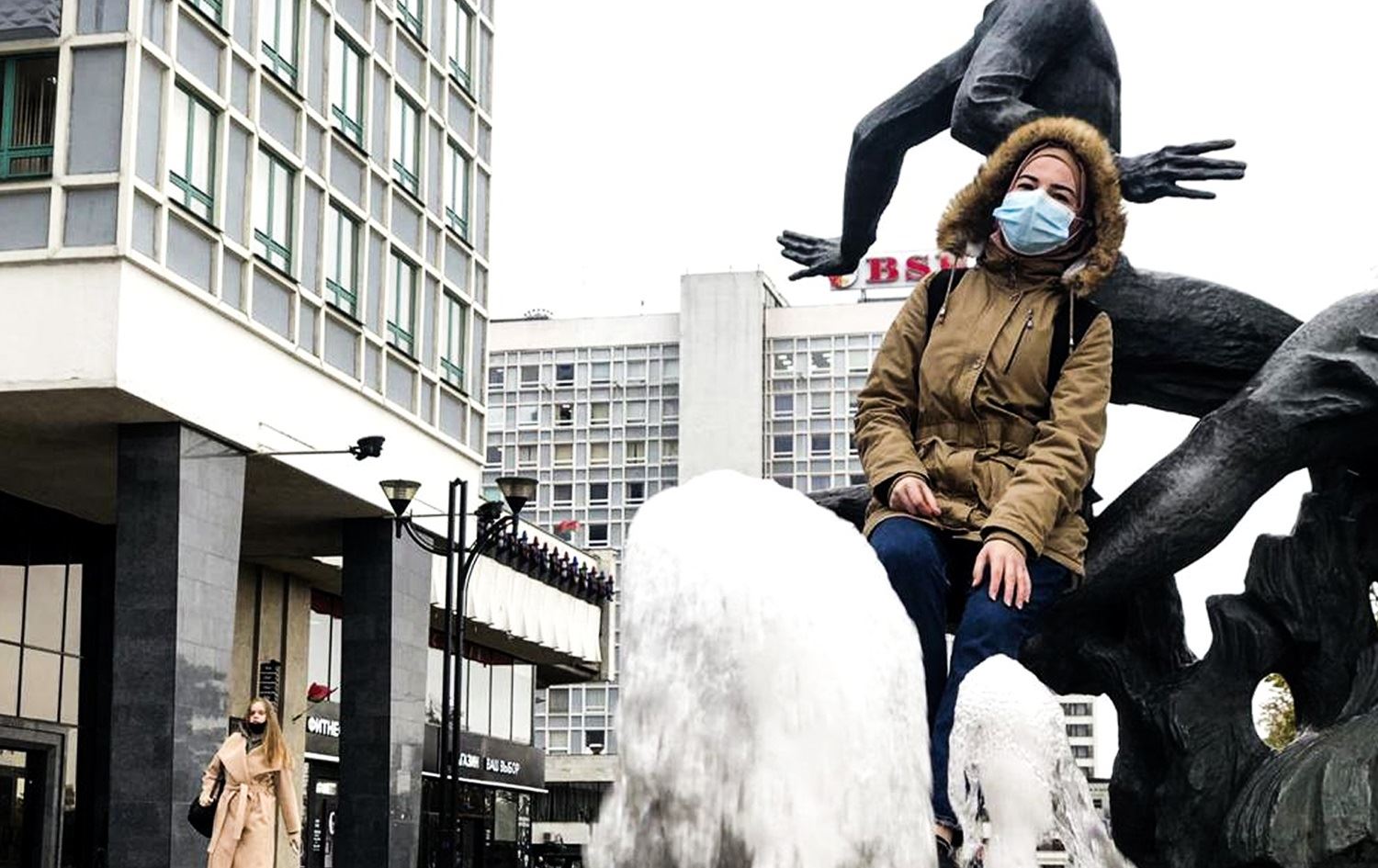 Syrian Kurd Bushra, who only gave her first name, poses for a photograph in Minsk, Belarus, on September 22, 2021. Photo: Bushra via AP