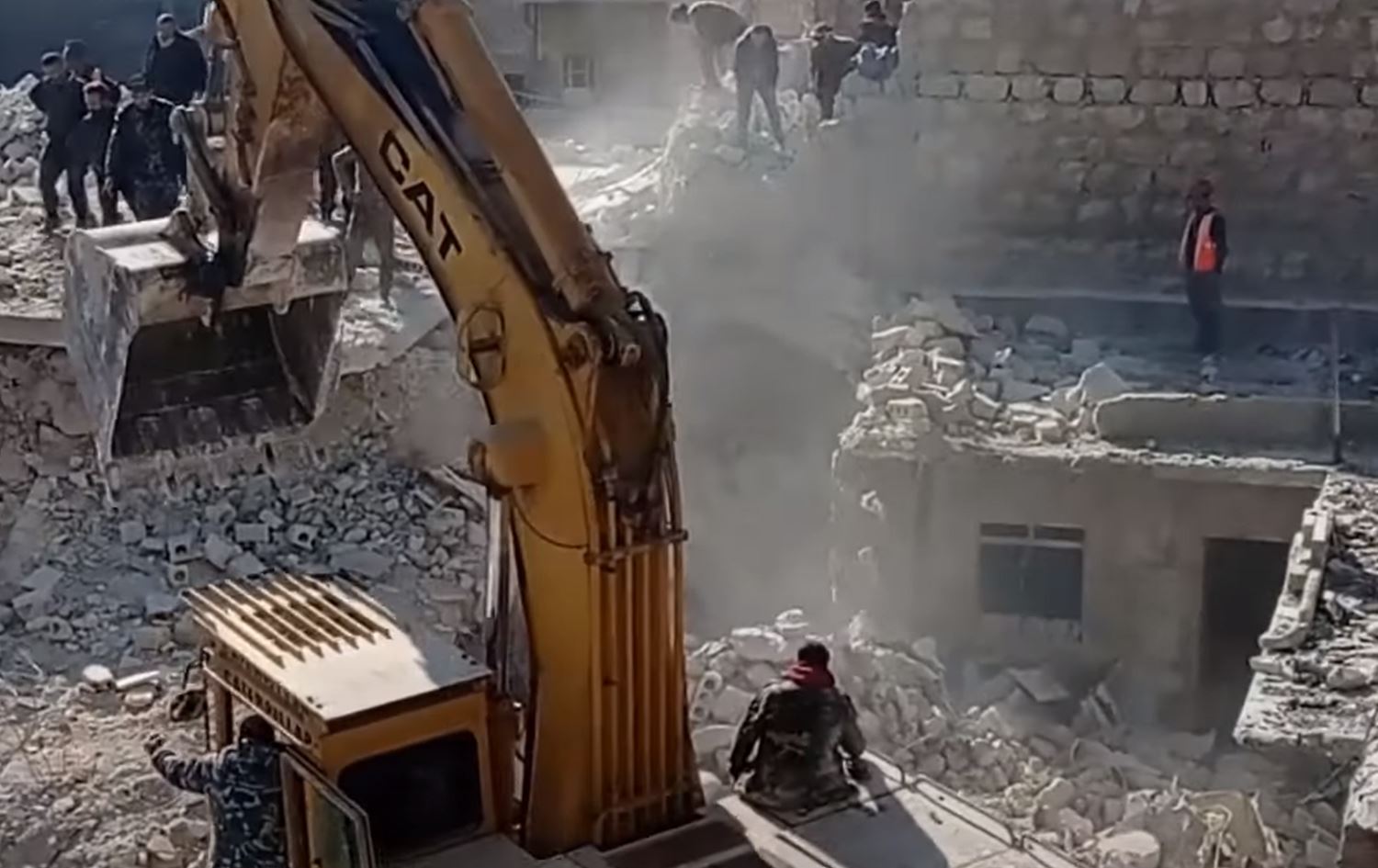 The aftermath of the building collapse in the Kurdish-controlled Sheikh Masqoud neighborhood in Aleppo, northwest Syria on January 22, 2023. Photo: SANA
